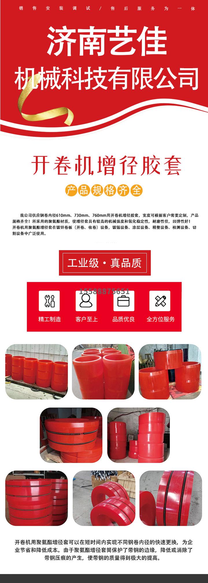 濟(jì)南藝佳機(jī)械有限公司開卷機(jī)增徑膠套,可實(shí)現(xiàn)以508為基礎(chǔ)的變徑和以610為基礎(chǔ)的變徑,具體請咨詢客服!15588875651